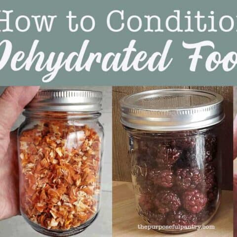Great question! Conditioning is checking that all the moisture is gone from the food before you store it. Not all food dehydrates at the same rate for various reasons. Here’s an article from Rockin W Homestead that explains more about that. There’s also an article in the post.