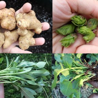 Special Notes: Jerusalem artichoke tubers look a bit like a ginger root crossed with a potato. Like a potato, they have eyes (or buds of growth). But like the ginger root, there are quite often multiple branches of tuber all connected. Sometimes you’ll get individual tubers that look like single, small potatoes.